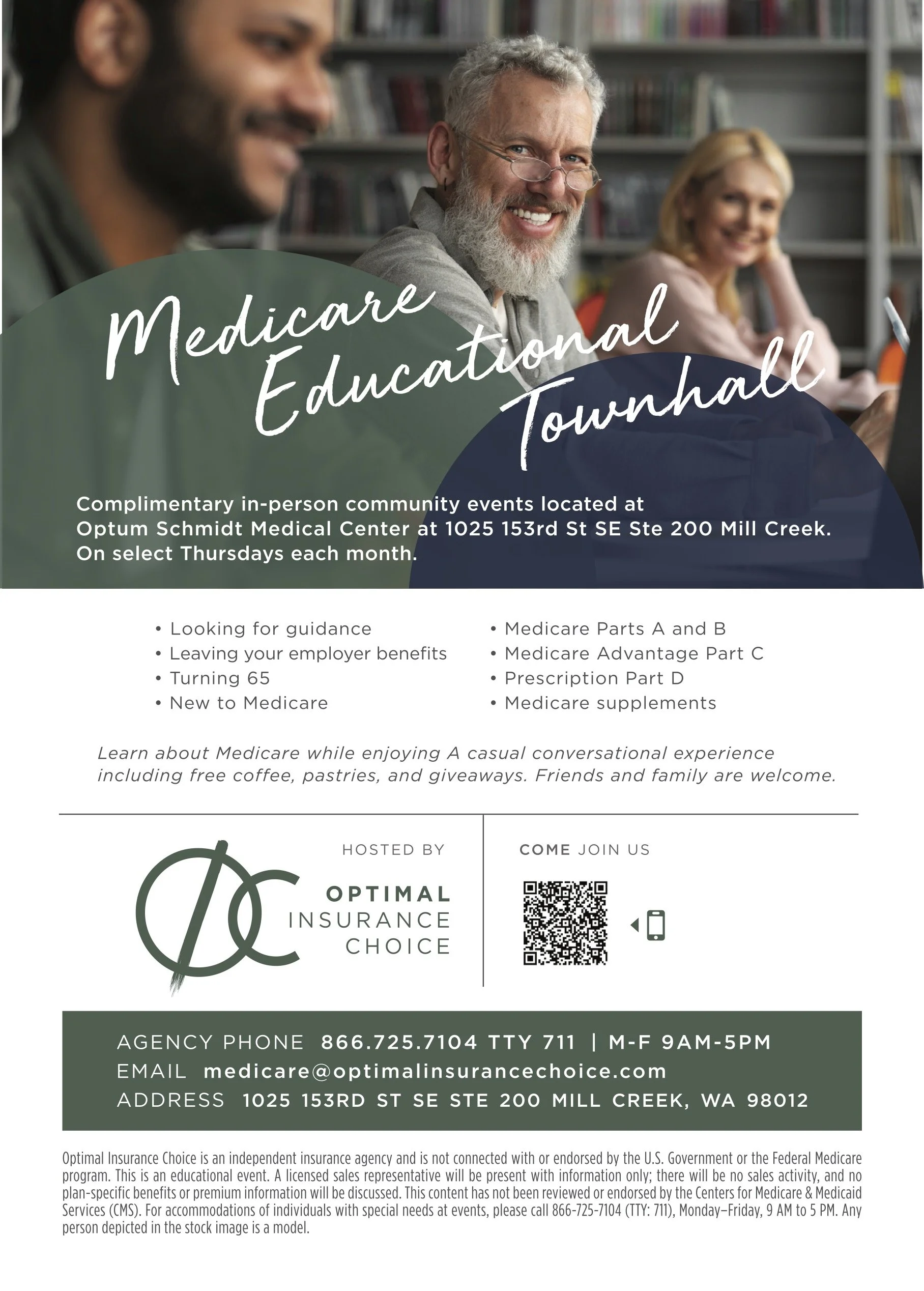 Optimal Insurance Choice is an independent insurance agency and is not connected with or endorsed by the U.S. Government or the Federal Medicare program and is not affiliated with Optum, The Polyclinic, or The Everett clinic. For accommodations of individuals with special needs at events, please call 866 725 7104 TTY 711 M-F 9am-5pm. Any person depicted in the stock image is a model. Optum Care Washington and The Polyclinic, PLLC, d/b/a Optum Care Washington. Optum Care Washington, formerly The Everett Clinic, and The Polyclinic, PLLC, d/b/a Optum Care Washington are physician owned and led practices having complete authority for all medical decision-making and patient care through their physicians and other licensed professionals. Optum Care Washington, through its management organizations ("Optum") provides non-clinical administrative services to support the Practices and their physicians. Neither Optum nor its management companies employ, engage, or supervise physicians or other licensed professionals or determine or set the methods, standards, or conduct of the practice of medicine or health care provided by the Practices or by any of their licensed professionals. Other ‹Pharmacies/Physicians/Providers> are available in our network.